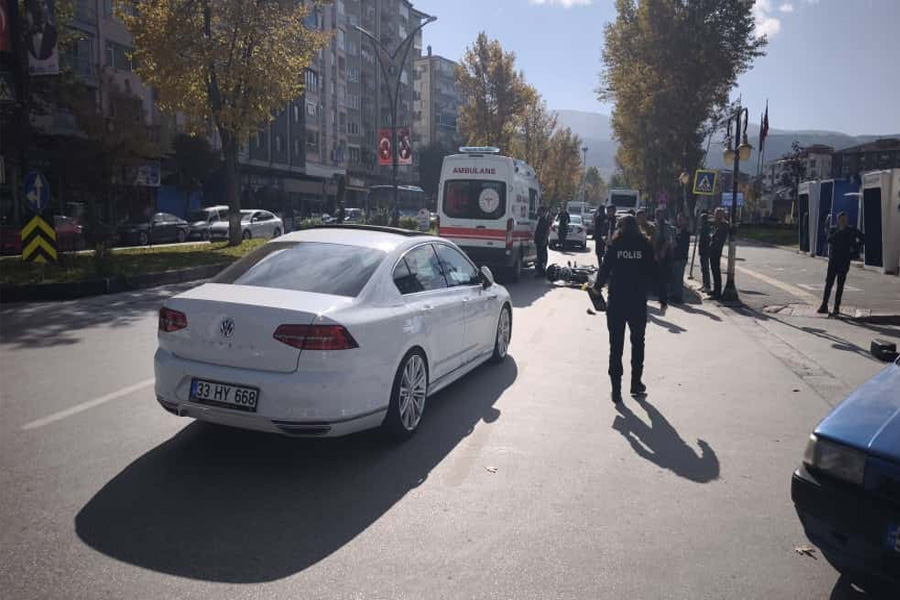 Alınan bilgiye göre, N.K. idaresindeki 33 HY 668 plakalı otomobil, Atatürk Bulvarında, ters yönden dönen A.K. (84) idaresindeki 43 AGY 782 plakalı elektrikli bisiklete arkadan çarptı.