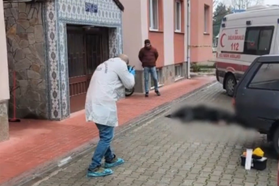 Alınan ihbar üzerine olay yerine kısa sürede ulaşan sağlık ve polis ekipleri apartman önünde yerde kanlar içinde yatan kişinin hayatını kaybettiğini tespit etti.