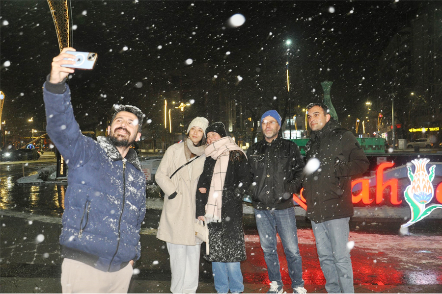Kütahya’da beklenen an geldi; mevsimin ilk karı kentin simgelerini beyaza boyarken, vatandaşlar Zafer Meydanı’na akın ederek karın tadını çıkardı.